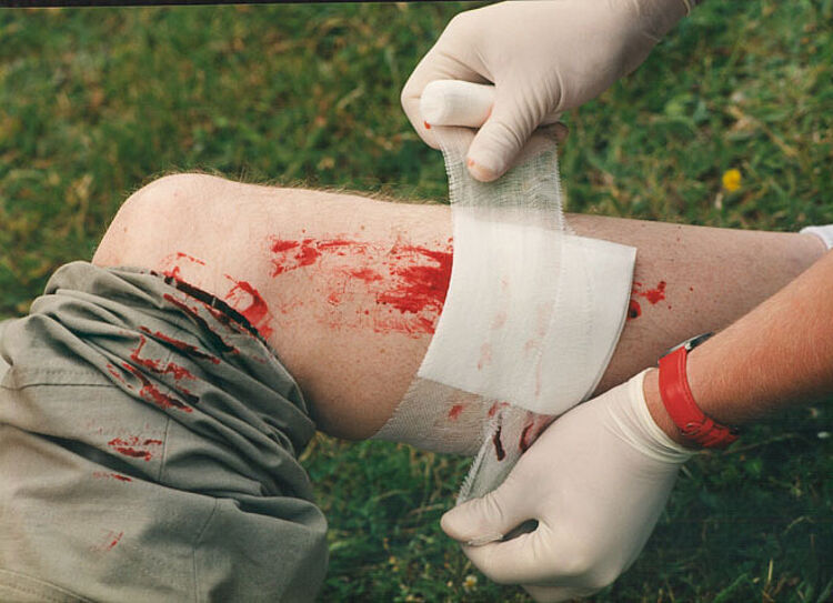 Wunde nicht berühren und keimfrei bedecken.